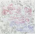 2019, dispersions synthétiques, techniques à la cire et aérosol sur papier (ref: 14).